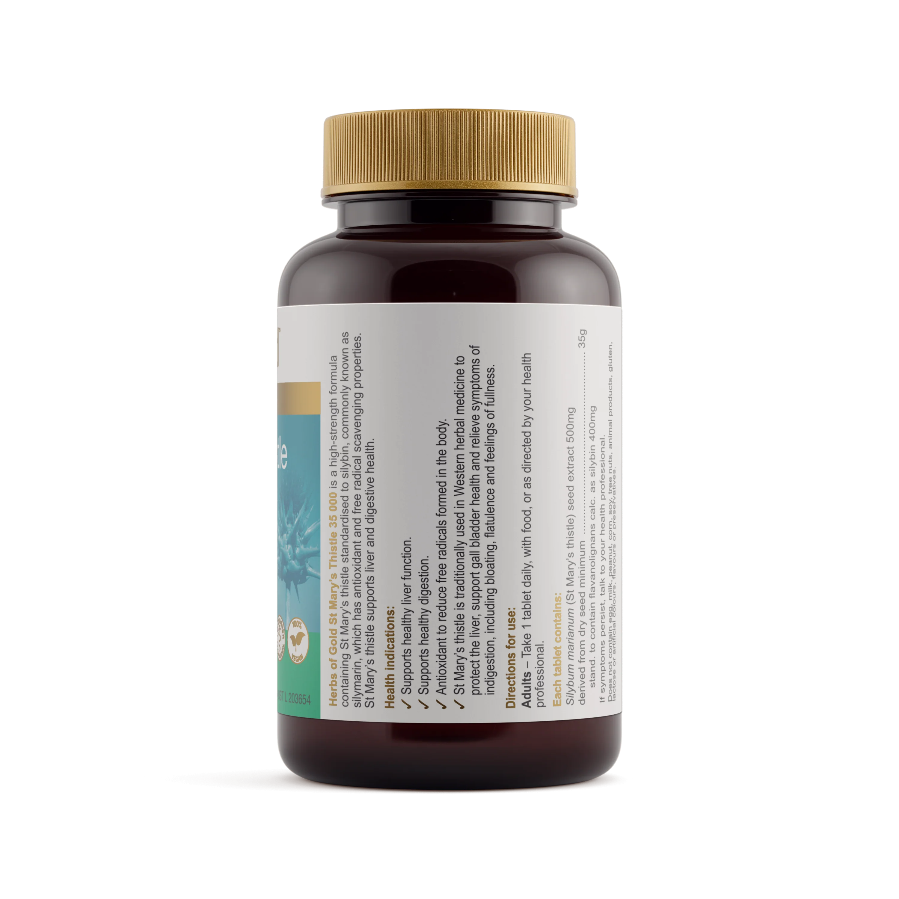 Herbs of Gold St Mary’s Thistle 35 000 contains a standardised extract of St Mary’s thistle to support healthy liver function.