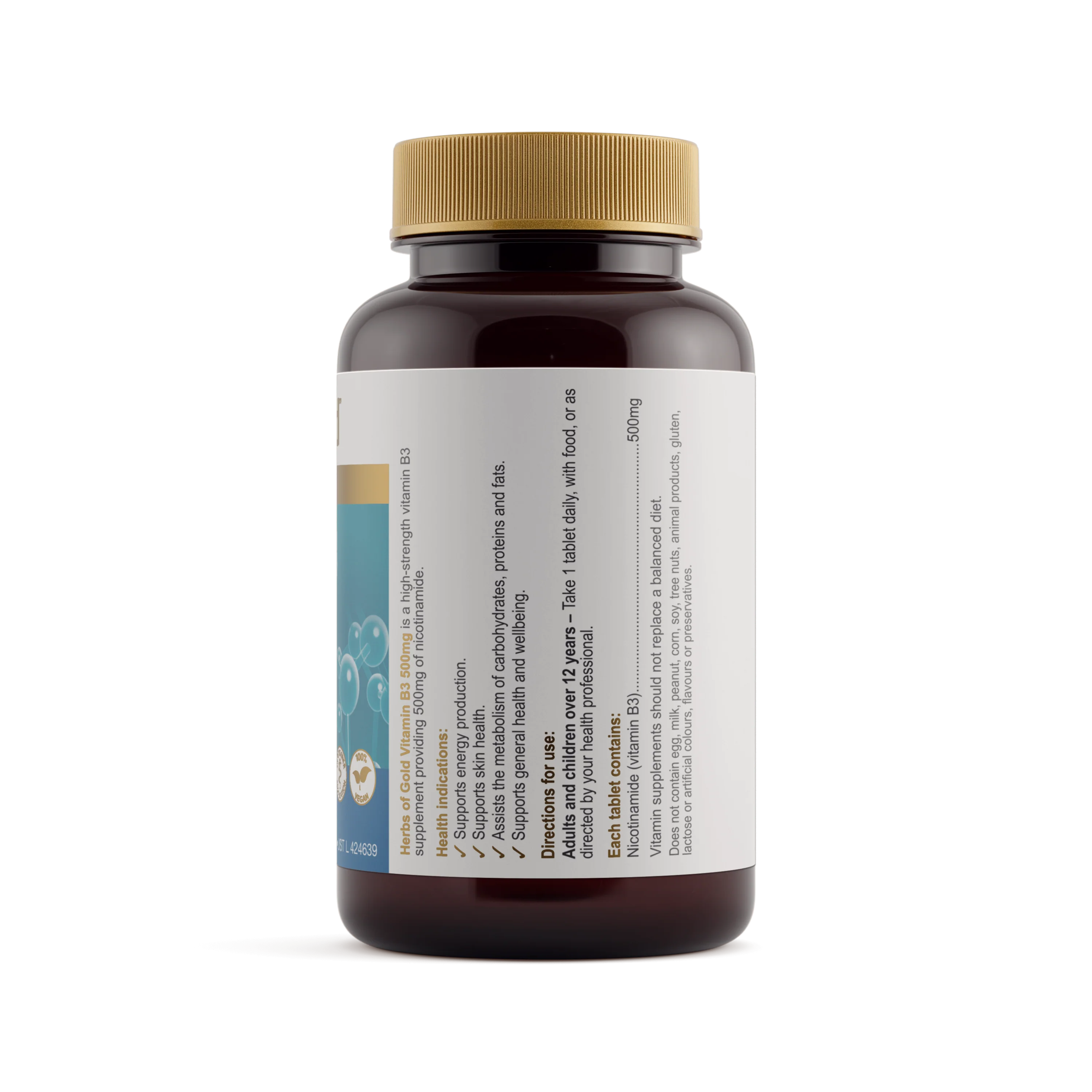 Herbs of Gold Vitamin B3 500mg is a high strength vitamin B3 supplement providing 500mg of nicotinamide.